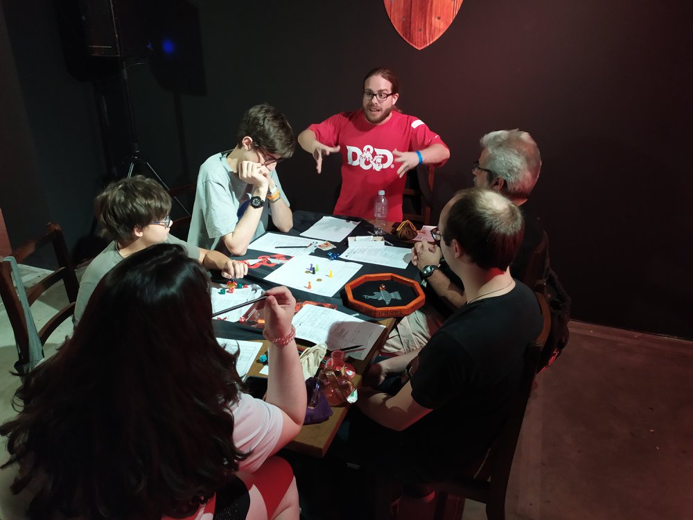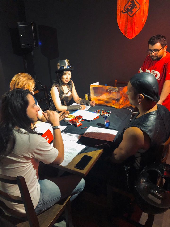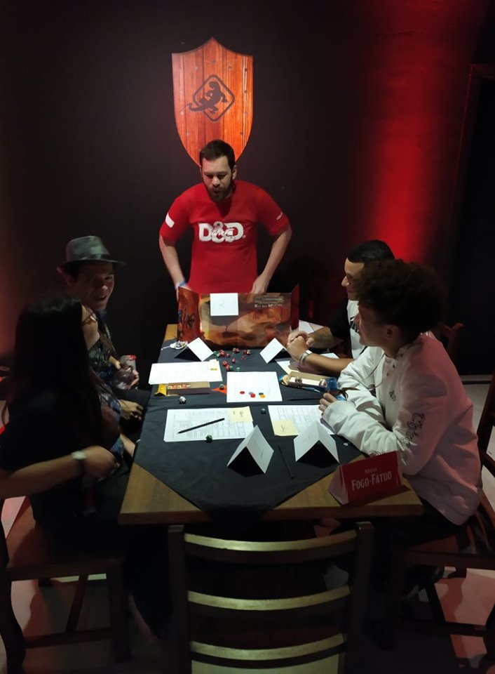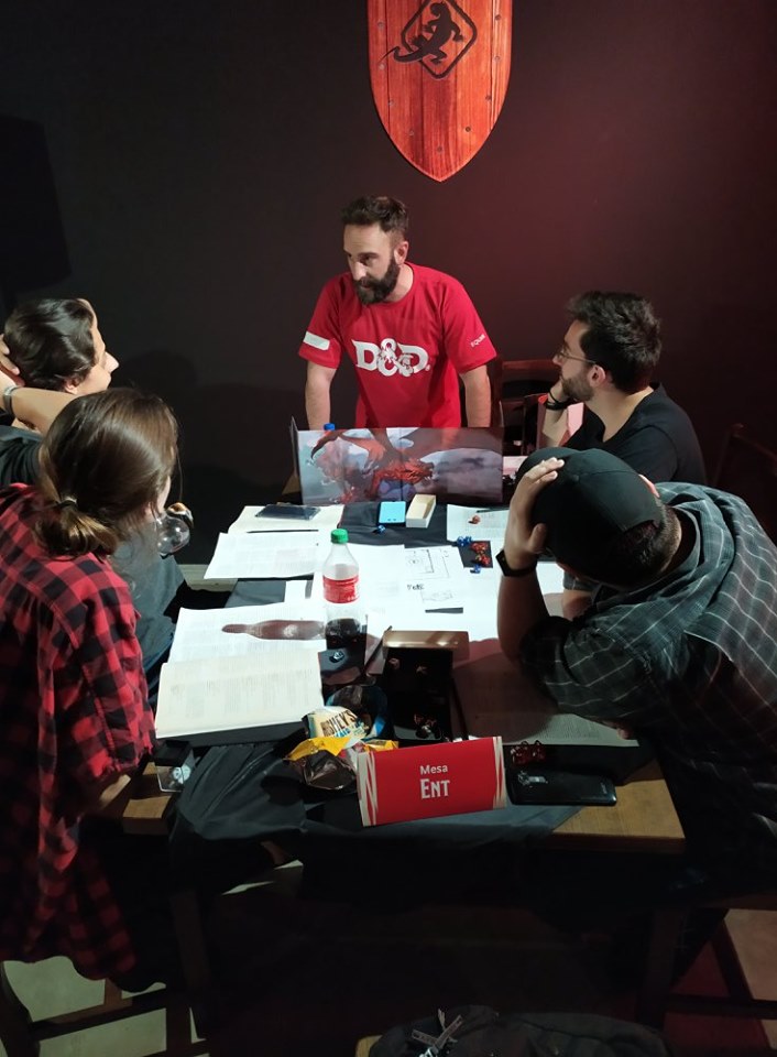 Eu mestrei em 4 mesas de curta duração. Usei uma série de encontros do livro Aventuras para a Quinta Edição #7 – Encontros Fantásticos, da Sagen, para fazer uma história simples e divertida. Mas a Galápagos convidou outros canais e pessoas de prestigio para participarem do evento, como a Roleplayers, Casa Velha RPG e Por um Punhado de dados.