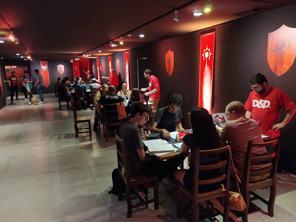 Não era um evento simples e sim um evento interativo. Claro que o livro do jogador, o famoso PHB – Players Handbook) estava a venda. Mas para entrar efetivamente no evento você tinha que se inscrever no site e conseguir um ingresso para a palestra ou aventura.