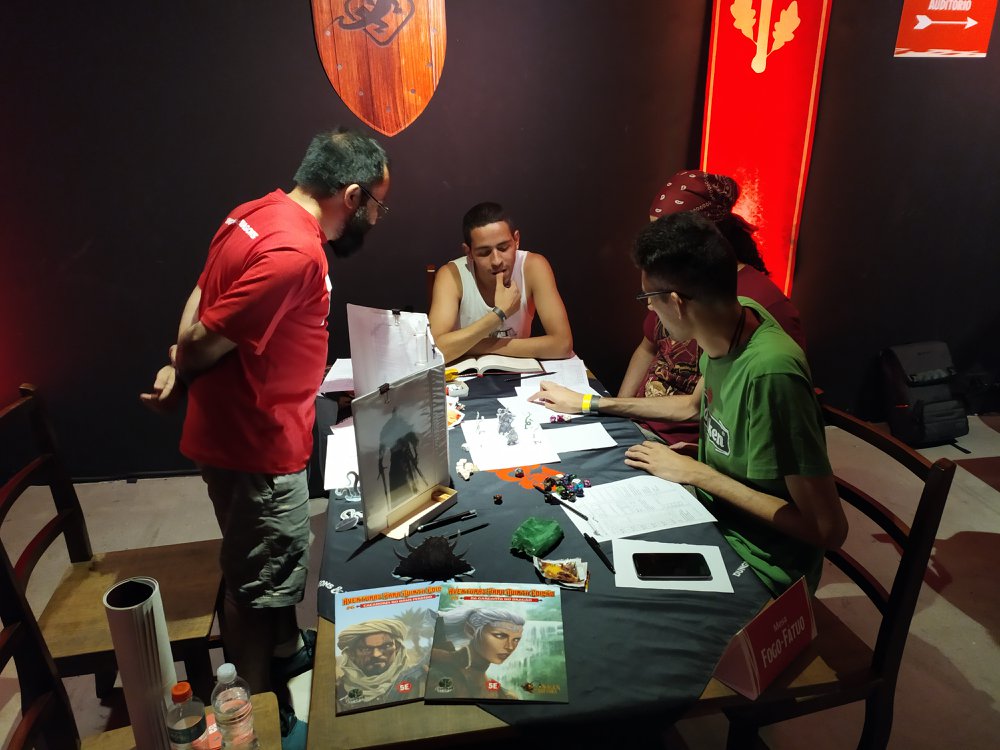 O ingresso era gratuito e este controle foi feito para simplesmente garantir o acesso de pessoas que iriam jogar ou assistir as palestras, e não ficar passeando pelo museu. Este que vós escreve, foi convidado pela Sagen Editora para mestrar no sábado e domingo, representando o Dungeon Geek, Bruno Mallavazzi, Anna Paula Tofoli, Vinicius Parisi e Fabio Akamine além de mestres de peso como Gustavo Moscardo Domingues (o Rei Grifo) e Thaís Priolli Domingues, Eduardo Luiz Pinto do canal Por um Punhado de Dados, Nadir Alves e Renato Alves. Havia dois tipos de mesa, as de curta duração com noventa minutos duração e as de “longa” duração, de 3 horas.